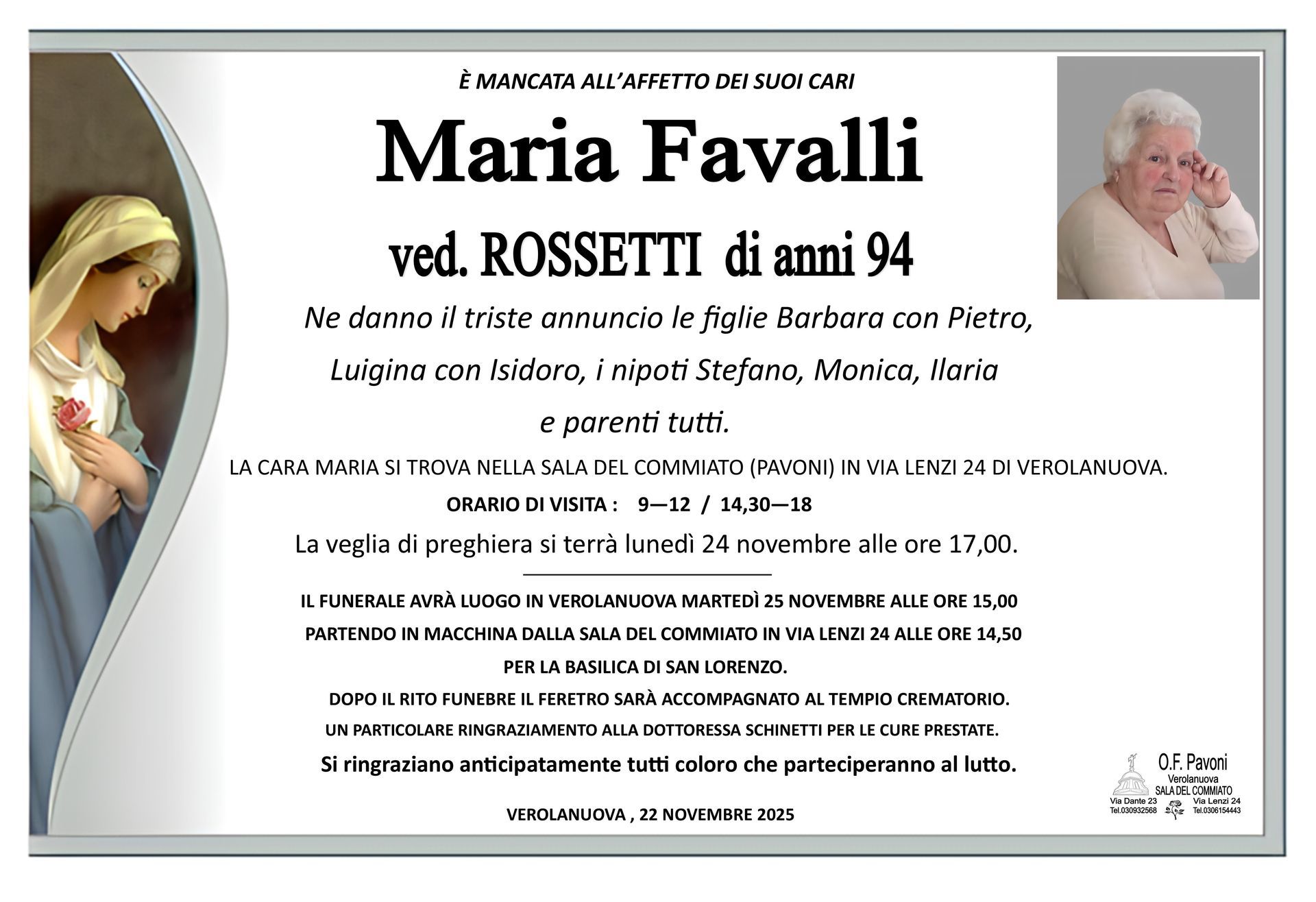 Le Onoranze Funebri Pavoni di Verolanuova sono una realtà di riferimento in tutta la provincia di Brescia in quanto offrono, con grande professionalità e discrezione, assistenza materiale e morale nell'organizzazione delle cerimonie funebri. Il personale esperto e la struttura rispondono con immediatezza e preparazione sin dalla prima richiesta di sostegno. L'attività può far leva su figure altamente qualificate in grado di svolgere compiutamente ogni fase del servizio funerario tra cui ricomposizione di salme, traslazione, cremazione e pubblicazione di necrologi. Ogni intervento viene eseguito con efficienza, tempestività e riservatezza per offrire a ciascun cliente il riserbo necessario in un momento tanto difficile e doloroso.